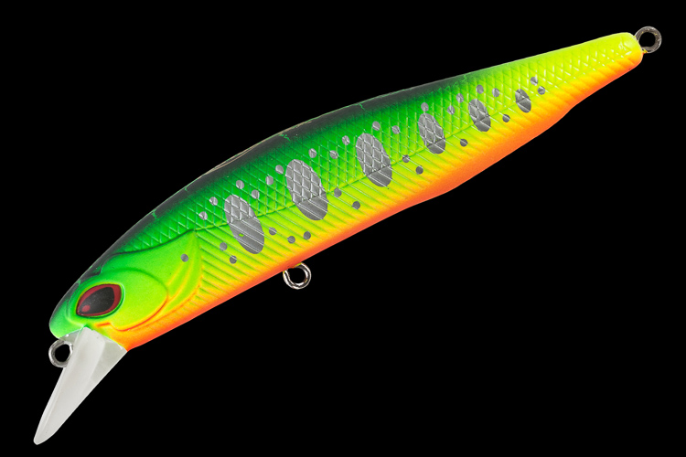 Designmerkmale: Bei der Gestaltung der Oberfläche des Wobblers werden zwei Texturoptionen verwendet: Der obere Teil der Seiten ist mit Kerben in Form von Schuppen versehen und unterhalb der Seitenlinie - in Form von schrägen Kerben. Der Rücken und der Bauch des Wobblers sind glatt. Der Kopfteil ist eine Imitation des Kopfes eines echten Fisches, mit Kiemendeckeln und verlängerten 3D-Augen. Das Gesamtdesign des Köders ist sehr realistisch. Der Wobbler ist mit zwei OWNER-Tees und Power-Wickelringen ausgestattet. Es gibt ein Gleichgewichtssystem und ein Fernmagnetsystem (MSDS). Hochwertige Farb- und Lackbeschichtung.