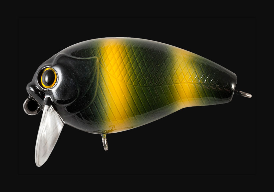 Небольшой подповерхностный кренк для ловли окуня. голавля, язя и других хищных рыб на реках со средним и быстрым течением. Имеет две, разделенные боковой линией, рельефные фактуры поверхности. Верхняя часть выполнена в виде ромбовидных насечек - чешуек, нижняя (вплоть до брюшка) в виде косых насечек. Спинка и брюшко приманки гладкие. В оснащении воблера использованы два тройника и качественные заводные кольца.