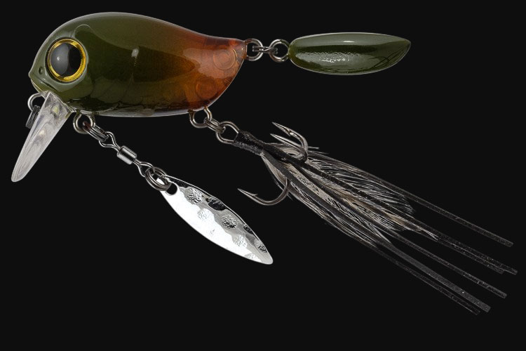 Особенности дизайна: KIKI 54F не похож на остальные воблеры-кренки, поскольку имеет в своей конструкции ряд оригинальных дополнительных элементов, призванных привлечь внимание хищной рыбы. Под брюшком у приманки находится подвижный металлический лепесток, который вращается при проводке, в задней части – жесткий пластиковый хвостик, который при движении в воде колеблется из стороны в сторону, а единственный тройник воблера оснащён мушкой из перьев и довольно длинных силиконовых нитей. Головная часть KIKI 54F рельефно имитирует жаберные крышки, а вклеенные объемные 3D глаза завершают реалистичный дизайн приманки.