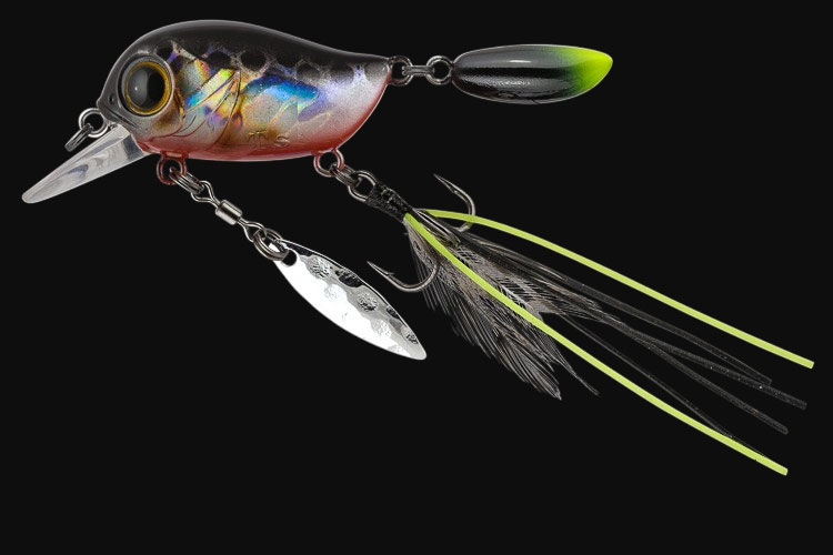 Особенности дизайна: KIKI MR 54F не похож на остальные воблеры-кренки, поскольку имеет в своей конструкции ряд оригинальных дополнительных элементов, призванных привлечь внимание хищной рыбы. Под брюшком у приманки находится подвижный металлический лепесток, который вращается при проводке, в задней части – жесткий пластиковый хвостик, который при движении в воде колеблется из стороны в сторону, а единственный тройник воблера оснащён мушкой из перьев и довольно длинных силиконовых нитей. Головная часть KIKI MR 54F рельефно имитирует жаберные крышки, а вклеенные объемные 3D глаза завершают реалистичный дизайн приманки.