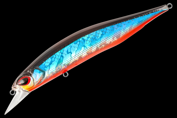 Особенности дизайна: В оформлении поверхности воблера использованы два варианта фактуры: спина гладкая, верхняя часть боков выполнена насечками в виде чешуек, а ниже боковой линии – в виде косых насечек. Головная часть – имитация головы настоящей рыбки, с жаберными крышками и очень крупными вытянутыми 3D глазами. Общий стиль приманки весьма реалистичный. Воблер вооружен двумя тройниками OWNER и силовыми заводными кольцами. Имеется система баланса и магнитная система дальнего заброса. ЛКП соответствует лучшим образцам современного воблеростроения.