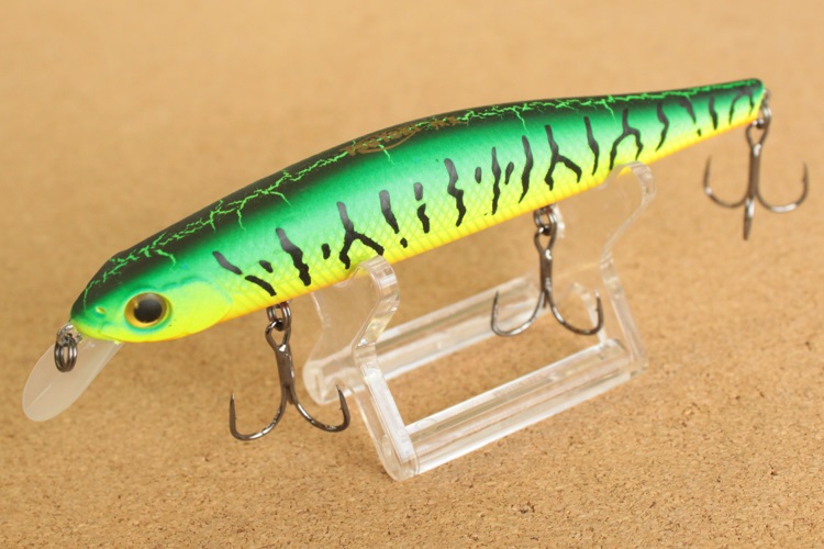 Ontwerpkenmerken: WATSON 110SP heeft twee reliëfoppervlaktestructuren gescheiden door een zijlijn. Het bovenste deel is gemaakt in de vorm van ruitvormige inkepingen, het onderste deel - in de vorm van schuine inkepingen. Het kopgedeelte van de wobbler imiteert in reliëf de kieuwdeksels van een vis, en 3D-ogen complementeren het realistische ontwerp van het hele aas. WATSON 110SP is uitgerust met een magnetisch verwerpsysteem en een balanceersysteem. Het aas is bewapend met drie Owner Cultiva-T-shirts van de juiste maat. Hoogwaardig lakwerk dat voldoet aan de moderne normen.