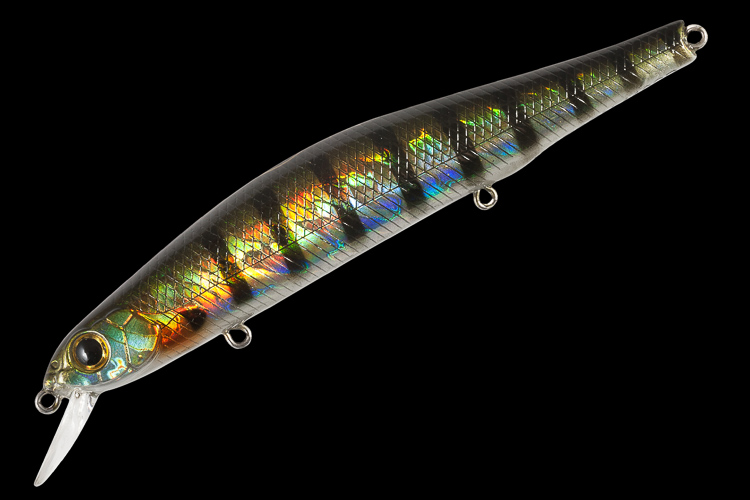 Ontwerpkenmerken: WATSON 110SP heeft twee reliëfoppervlaktestructuren gescheiden door een zijlijn. Het bovenste deel is gemaakt in de vorm van ruitvormige inkepingen, het onderste deel is gemaakt in de vorm van schuine inkepingen. Het kopgedeelte van de wobbler imiteert in reliëf de kieuwdeksels van een vis, en 3D-ogen complementeren het realistische ontwerp van het hele aas. WATSON 110SP is uitgerust met een magnetisch verwerpsysteem en een balanceersysteem. Het aas is bewapend met drie Owner Cultiva-T-shirts van de juiste maat. Hoogwaardig lakwerk dat voldoet aan de moderne normen.