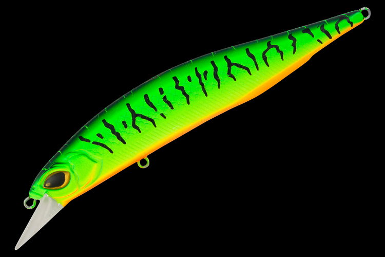 Ontwerpkenmerken: Bij het ontwerp van het oppervlak van de wobbler worden twee textuuropties gebruikt: de achterkant is glad, het bovenste deel van de zijkanten is gemaakt met inkepingen in de vorm van schubben en onder de zijlijn - in de vorm van schuine inkepingen. Het kopgedeelte is een imitatie van de kop van een echte vis, met kieuwdeksels en zeer grote langwerpige 3D-ogen. De algemene stijl van de aanvalsman is zeer realistisch. De wobbler is bewapend met twee OWNER-T-stukken en krachtige opwindringen. Er is een balanssysteem en een magnetisch longcast-systeem. Het lakwerk komt overeen met de beste voorbeelden van moderne wiebelconstructies.