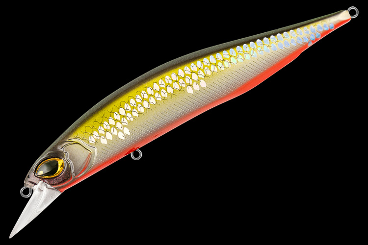 Ontwerpkenmerken: Bij het ontwerp van het oppervlak van de wobbler worden twee textuuropties gebruikt: de achterkant is glad, het bovenste deel van de zijkanten is gemaakt met inkepingen in de vorm van schubben en onder de zijlijn - in de vorm van schuine inkepingen. Het kopgedeelte is een imitatie van de kop van een echte vis, met kieuwdeksels en zeer grote langwerpige 3D-ogen. De algemene stijl van de aanvalsman is zeer realistisch. De wobbler is bewapend met twee OWNER-T-stukken en krachtige opwindringen. Er is een balanssysteem en een magnetisch longcast-systeem. Het lakwerk komt overeen met de beste voorbeelden van moderne wiebelconstructies.